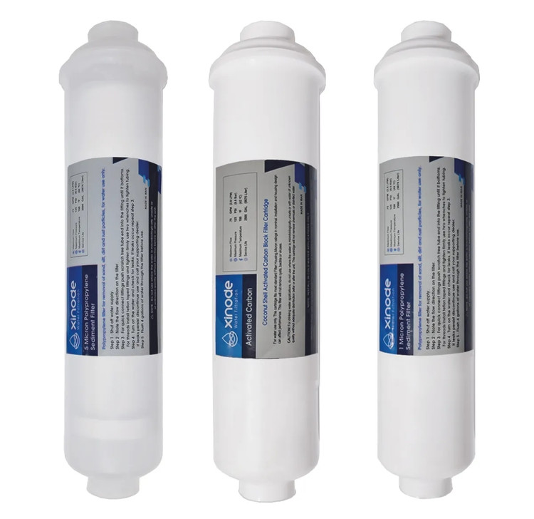 پکیج فیلترهای پیش تصفیه ( مرحله 1 و 2 و 3 ) اینلاین in-line ، برای اکثر دستگاههای اینلاین مورد استفاده قرار میگیرند مگر اینکه دستگاهی نیاز به فیلتری خاص داشته باشد . این فیلترها نیز همانند فیلترهای کارتریجی ، در مرحله اول از فیلتر الیافی ، در مرحله دوم از فیلتر کربن فعال ، در مرحله سوم از فیلتر کربن بلاک یا الیافی ، استفاده می کنند . همانگونه که میدانید ،مزیت فیلترهای In-line این است که از نظر بهداشتی استاندارد تر هستند و در مقابل با فشارهای بالا مقاوم ترند و نصب آنها نیز آسان تر است و ایراد آنها نیز ، گران تر بودن آنهاست . همواره سعی کنید از فیلترهای باکیفیت بالا ، در دستگاه خود اسفاده کنید که کربن منشاء گیاهی داشته باشند . این فیلترها علاوه بر فراهم نمودن آب سالم و استاندارد ، از دستگاه نیز به خوبی مراقبت می کنند .